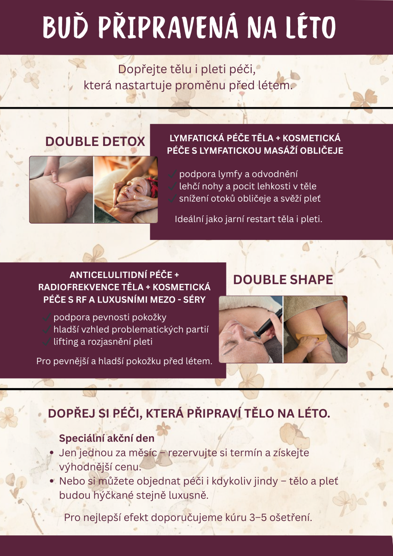 Objednej si DOUBLE PÉČI, která cílí přímo na to, co pleť a pokožka před létem potřebuje.